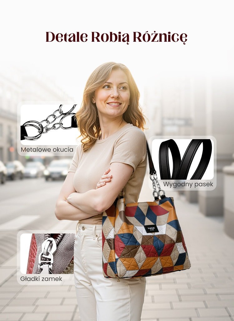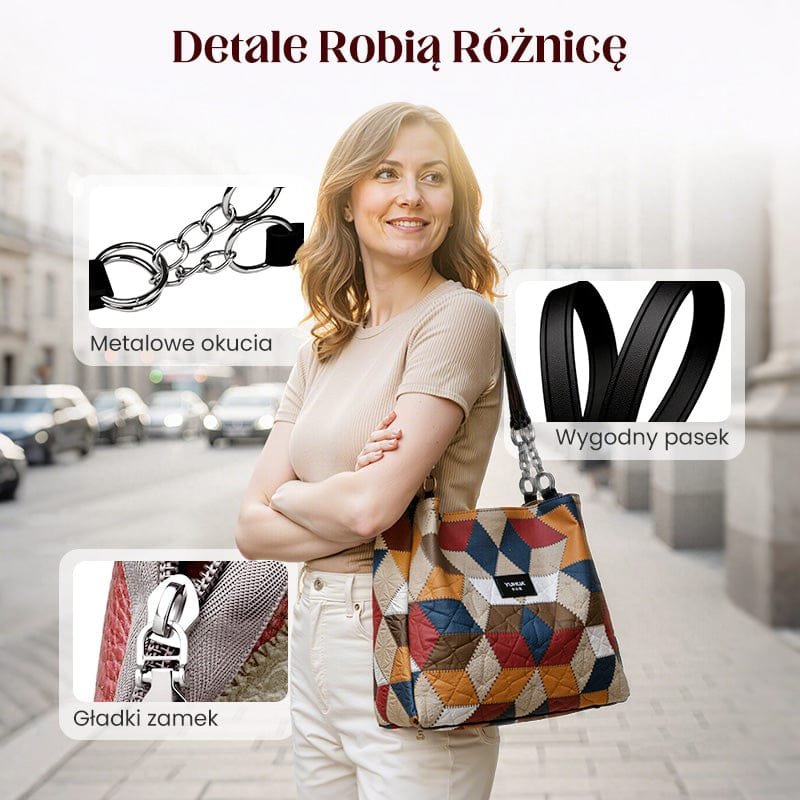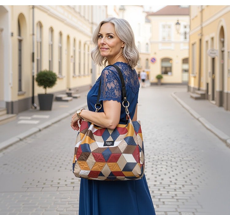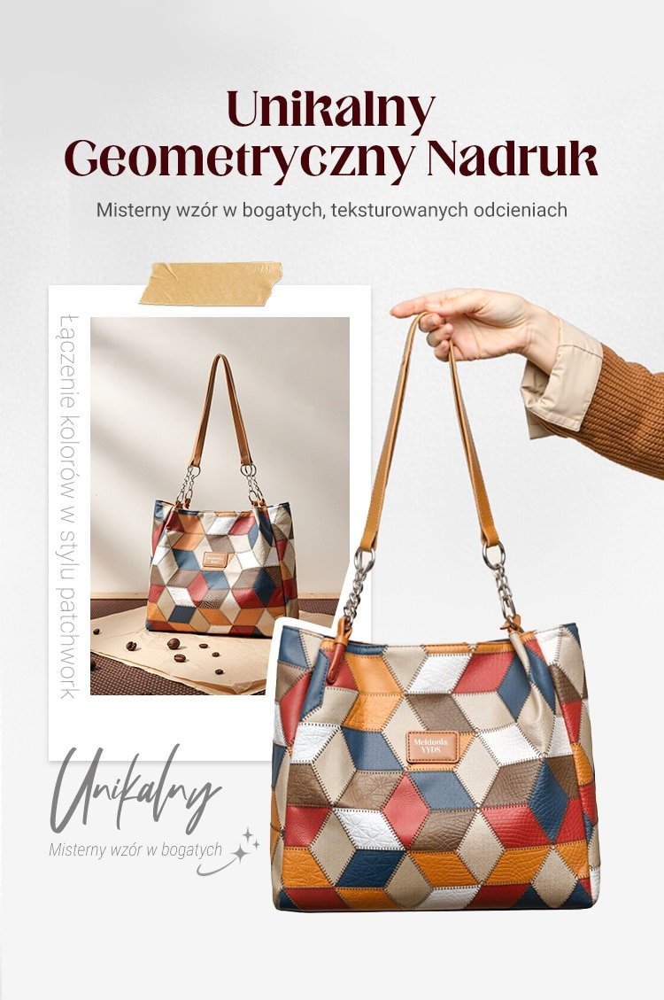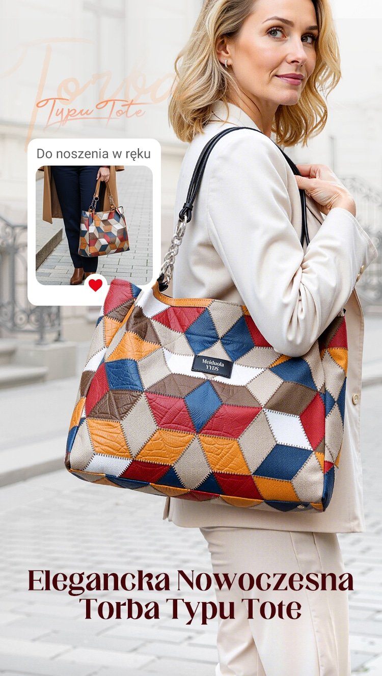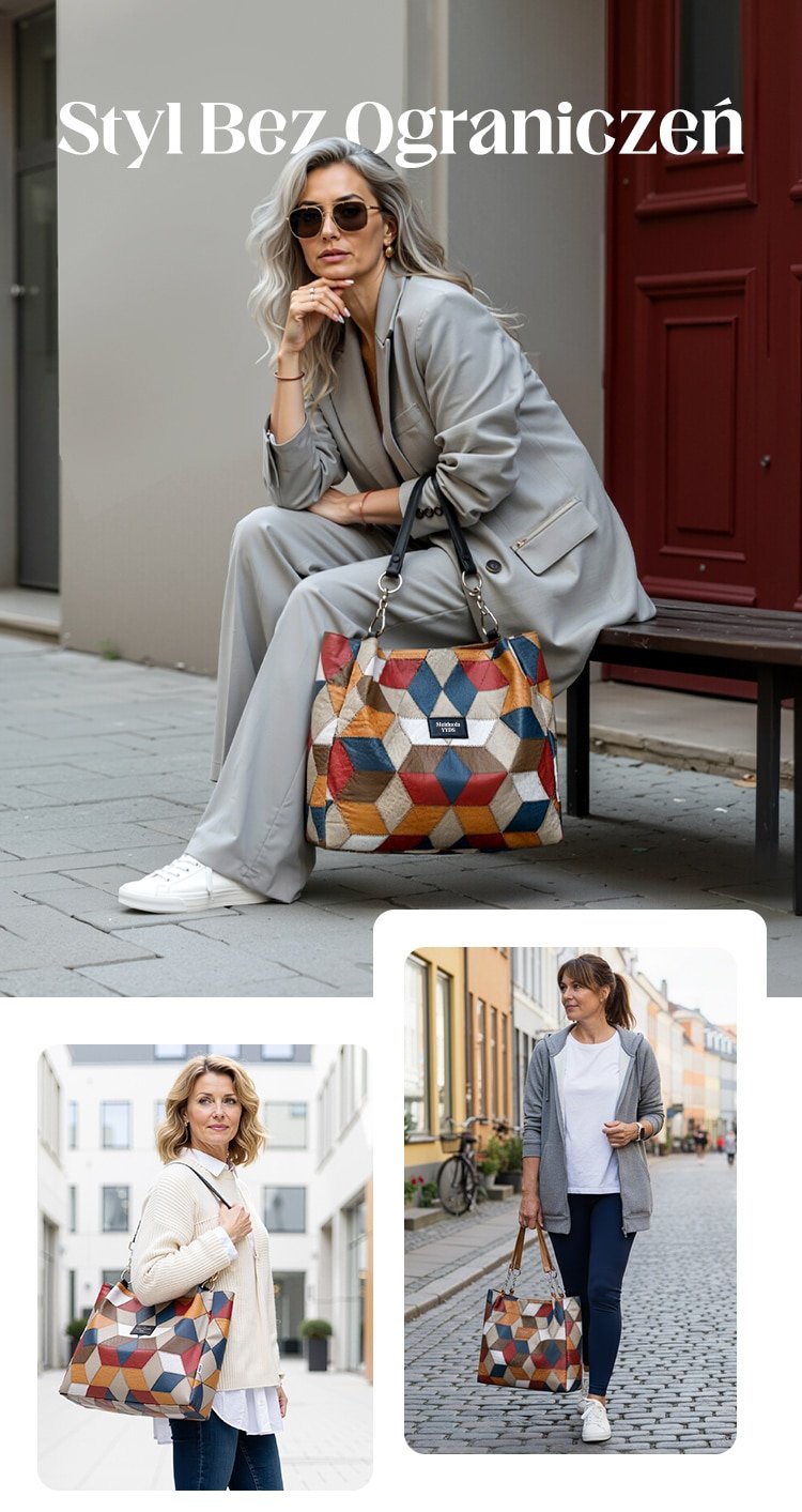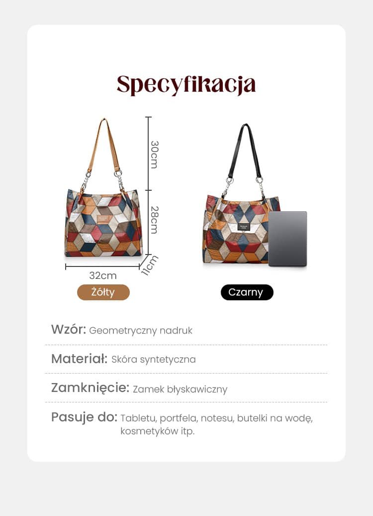 🥳 👜Modna torba typu tote z geometrycznym wzorem i dużą pojemnością